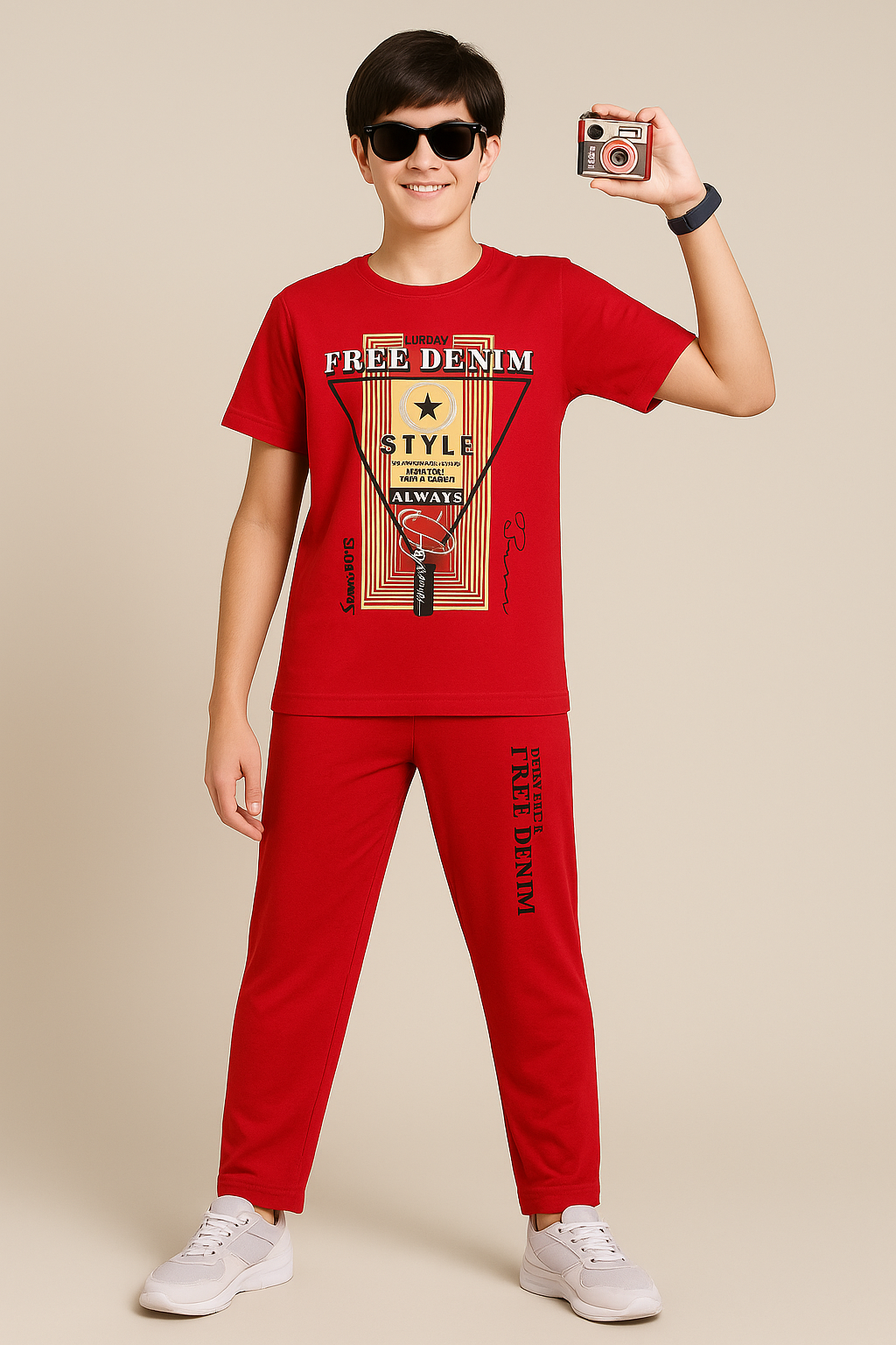 Keep your young trendsetter stylish and comfortable with our Game On Boys Cotton Set — perfect for lounging, playing, or casual outings.